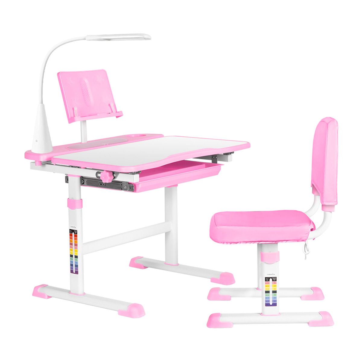 Детский набор Avgusta Comfort со светильником включает в себя всё необходимое для занятий: он состоит из школьной парты, стула и чехла для него, а так же подставки для книг и лампы. В отличие от обычного письменного стола, вам не составит труда настроить правильный угол в сгибе коленного сустава при посадке – 90°. Благодаря регулировке высоты стола и стула, а также регулировке угла наклона столешницы комплект прослужит ребенку с детского сада до конца младшей школы. Сидя за такой партой, у первоклассника есть все комфортные условия для письма, рисования, творчества и игр.
